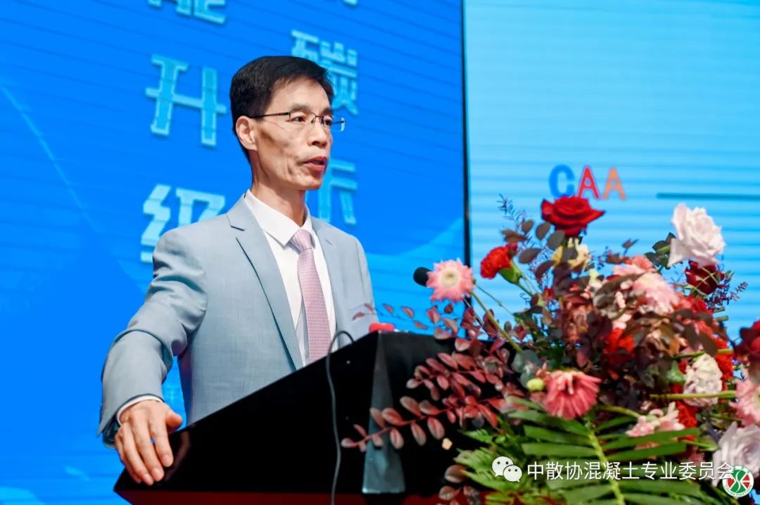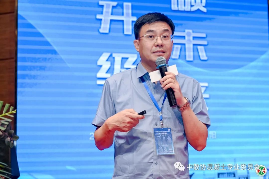 中國商品混凝土行業(yè)企業(yè)專家委員會委員殷繼偉做了《基于一種石屑混凝土專用外加劑制備試驗研究》的主題報告,近年來,由于河套治理收緊,河砂資源日益匱乏,機制砂和尾礦砂在東北地區(qū)相對較少,而礦山破碎石子過程中產(chǎn)生的廢石屑數(shù)量較大,但其利用率低,也造成了資源浪費和一定的環(huán)境影響。在這種情況下,廢石屑取代河砂配制混凝土也成為一種必然,作為我們重點研究的對象。針對如何利用廢石屑制備混凝土,增加固廢用量,我們研制了一種專用外加劑,針對硅質(zhì)類花崗巖石屑,石粉含量高、粘附性強、級配不合理等特點,采用減水、保坍、降粘、激發(fā)為一體的專用外加劑合成技術(shù),對石屑性能進行改良,實現(xiàn)了廢石屑的綜合利用,從而減少了廢石屑的大量堆存,有效降低二氧化碳的排放,提高了固廢綜合利用水平。