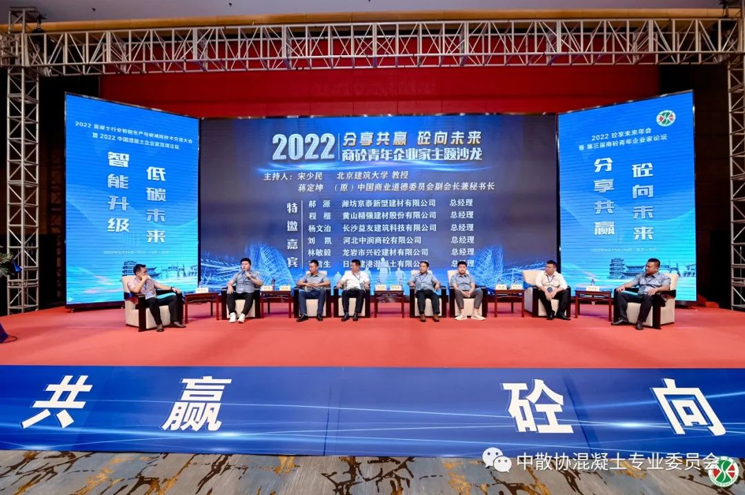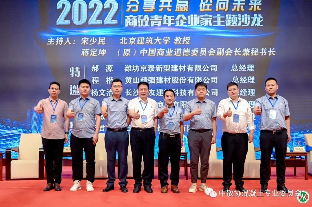“分享共贏、砼向未來” 商砼青年企業(yè)家主題沙龍,沙龍?zhí)匮本┙ㄖ髮W(xué)宋少民教授、(原)中國商業(yè)道德委員會副會長兼秘書長蔣定坤教授擔(dān)任主持人,邀請濰坊京泰新型建材有限公司總經(jīng)理郝源、黃山精強建材股份有限公司總經(jīng)理程楷、長沙益友建材科技有限公司總經(jīng)理楊文治、河北中潤商砼有限公司總經(jīng)理劉凱、龍巖興砼建材有限公司總經(jīng)理林敏毅、日照建港混凝土有限公司總經(jīng)理王君生六位商砼青年企業(yè)家上臺共同探討交流。幾位商砼行業(yè)二代新生企業(yè)家代表分別結(jié)合自己的成長歷程,談了對企業(yè)管理、創(chuàng)新、發(fā)展的理解,談到了對行業(yè)的情懷,也談到了對于傳承的理解和為之奮斗的決心,每位青年企業(yè)家都有著自己獨到的見解,兩位專家主持也肯定了幾位年輕企業(yè)家的努力,并表示新生代企業(yè)家的努力奮斗讓我們看到了混凝土行業(yè)無限光明的未來!