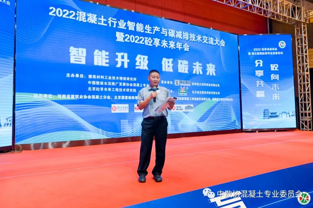2022年9月15日,由(國家)建筑材料工業(yè)技術(shù)情報研究所、中國散裝水泥推廣發(fā)展協(xié)會混凝土專委會主辦;洛陽冠大利祥商砼有限公司承辦;長沙益友建筑科技有限公司聯(lián)合承辦;由北京砼享未來工程技術(shù)研究院、河南省建筑業(yè)協(xié)會混凝土分會、北京國雷律師事務(wù)所、 廣東為峰律師事務(wù)所、福建泉工股份有限公司、河南黎明重工科技股份有限公司等參與協(xié)辦;由中國建筑材料聯(lián)合會、中國砂石協(xié)會、浙江省混凝土協(xié)會、山東省混凝土與水泥制品協(xié)會、四川省散裝水泥和預(yù)拌砂漿推廣發(fā)展協(xié)會、貴州省預(yù)拌混凝土行業(yè)協(xié)會、云南省混凝土協(xié)會、海南省質(zhì)量檢測行業(yè)協(xié)會、廣西工程建設(shè)質(zhì)量安全管理協(xié)會混凝土分會、山西省建筑業(yè)協(xié)會鋼筋混凝土專業(yè)委員會、天津市混凝土行業(yè)協(xié)會、烏魯木齊預(yù)拌建筑材料行業(yè)協(xié)會、青海省混凝土行業(yè)協(xié)會、吉林預(yù)拌混凝土砂漿行業(yè)協(xié)會、日照市混凝土協(xié)會、成都市混凝土協(xié)會、臨沂市混凝土與預(yù)拌砂漿行業(yè)協(xié)會、青島市建設(shè)工程質(zhì)量協(xié)會、東莞市預(yù)拌混凝土協(xié)會、邯鄲市預(yù)拌混凝土協(xié)會等協(xié)會聯(lián)合支持的2022混凝土行業(yè)智能生產(chǎn)與碳減排技術(shù)交流大會暨2022中國混凝土企業(yè)家高峰論壇在河南洛陽隆重召開!