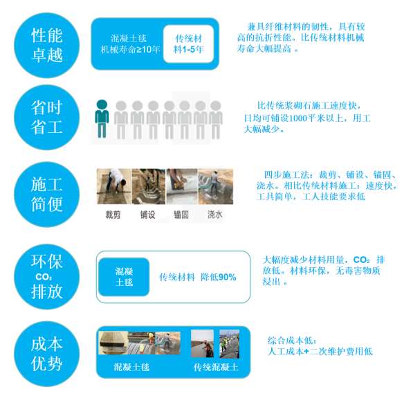 混凝土毯優(yōu)點 VS 傳統(tǒng)材料      Vantagens de cobertores de concreto                             Materiais tradicionais