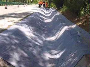 混凝土毯使用極為簡單:打開卷材、切割、鋪設、固定、澆水。澆水24小時后,混凝土毯抗折強度可高達10MPa以上。增強纖維可增強韌性,防止開裂,并且使整個材料結(jié)構(gòu)有極強的整體性,抵御極強的變形沖擊,機械壽命長。